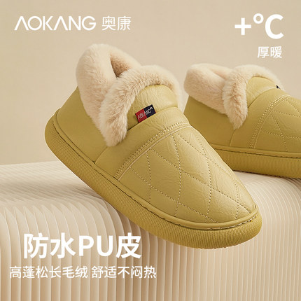 奥康包跟防水保暖加绒居家棉拖鞋