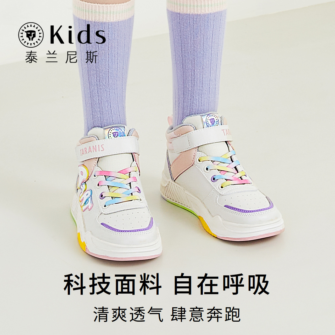 泰兰尼斯kids新款女童板鞋彩虹底中大童滑板鞋高帮春秋休闲运动鞋