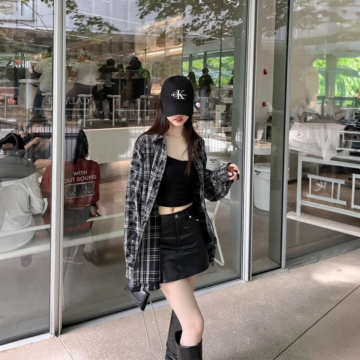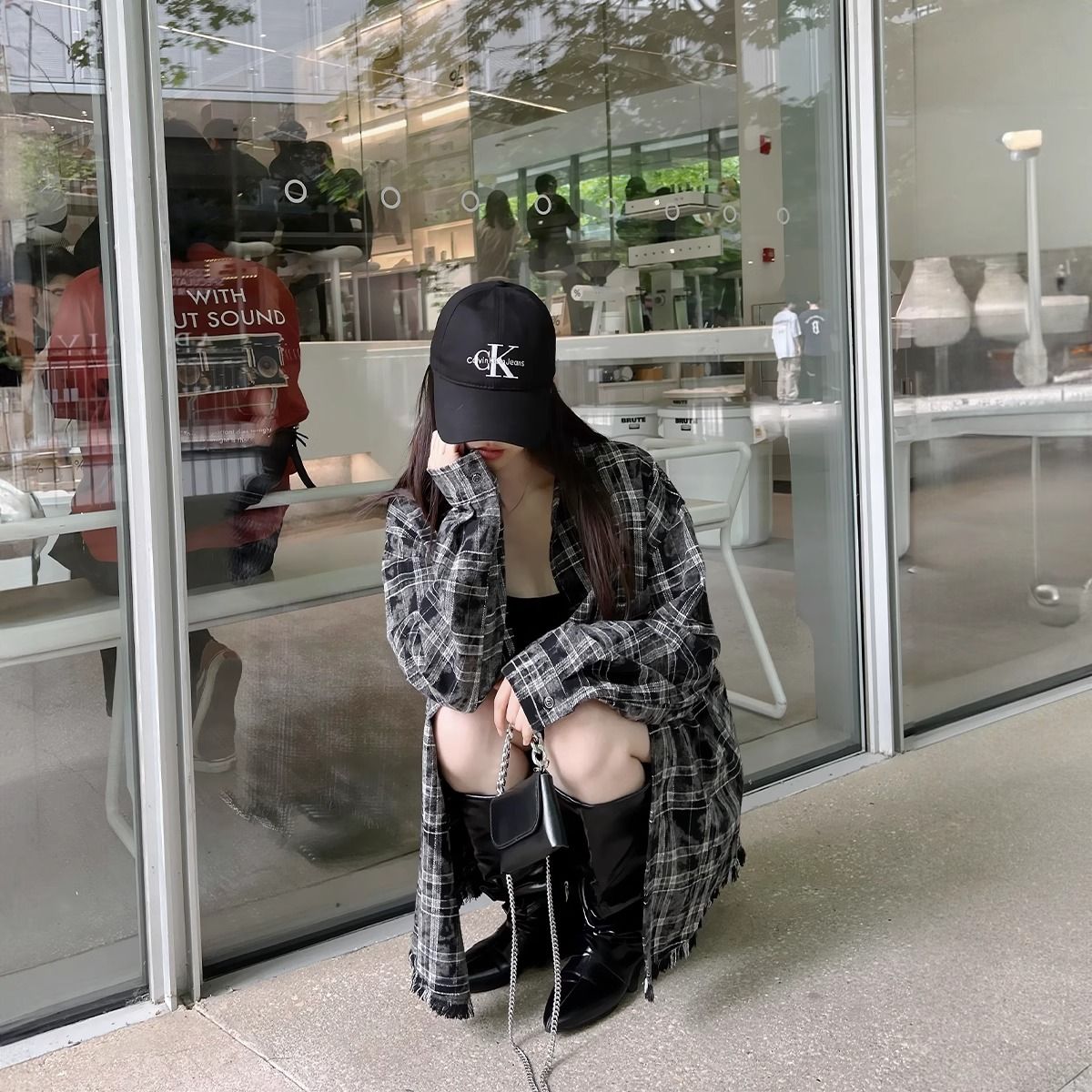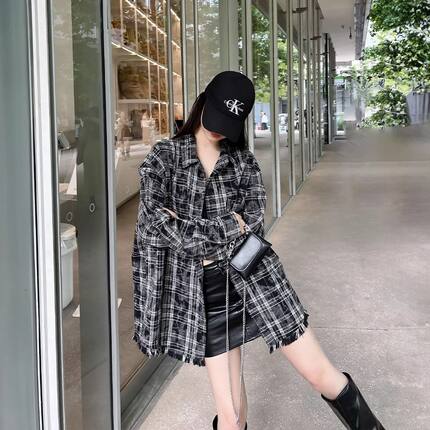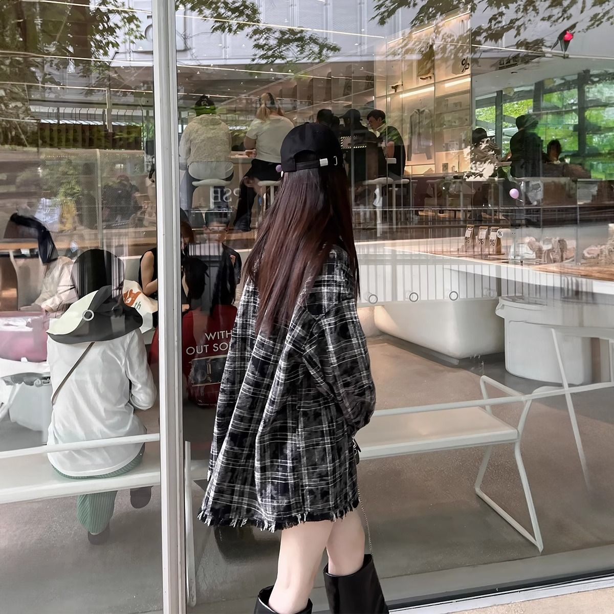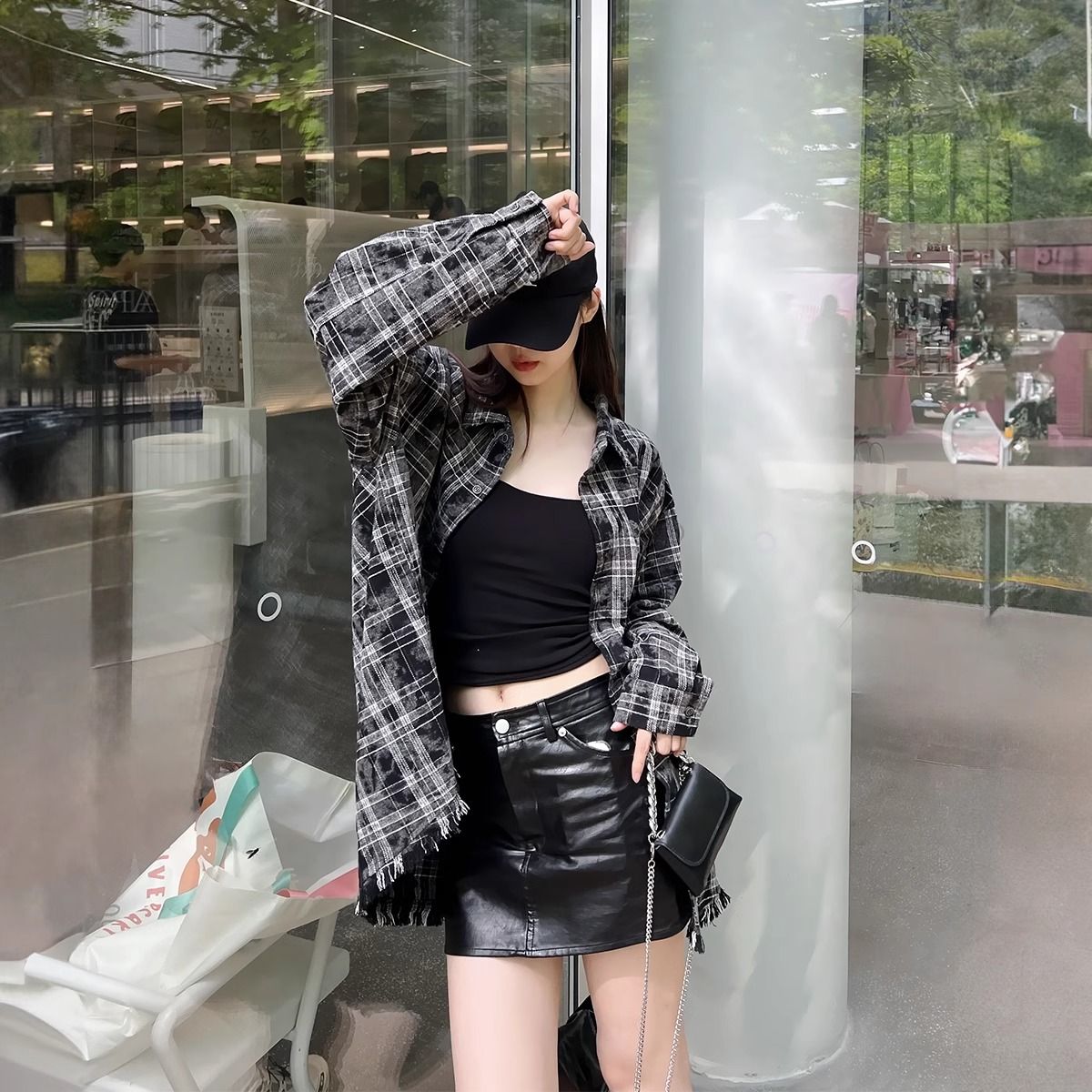 复古黑色扎染格子衬衫女春秋2025新款潮牌长袖上衣宽松情侣装衬衣