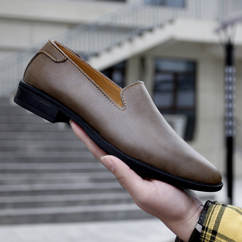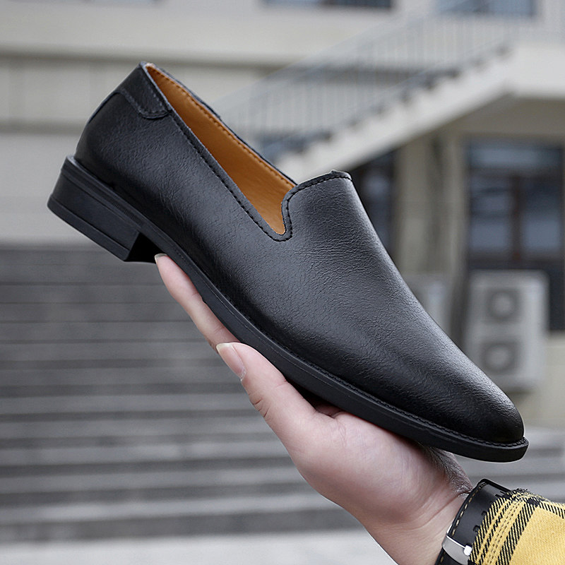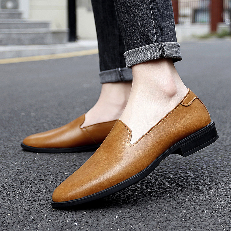 尖头休闲男皮鞋2025新款轻便软低真皮小码时尚潮流一脚蹬豆豆鞋男
