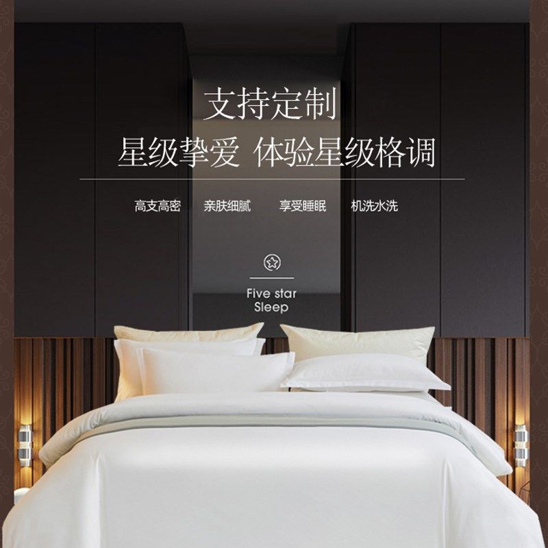 酒店床品四件套宾馆床o上用品民宿纯白色被套床单布草床笠三件套