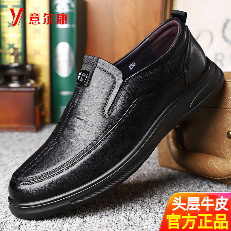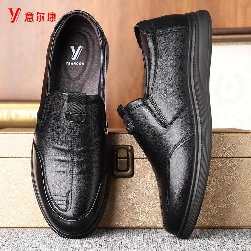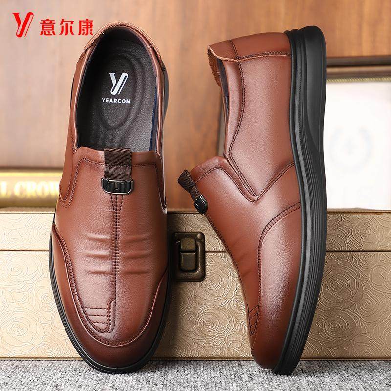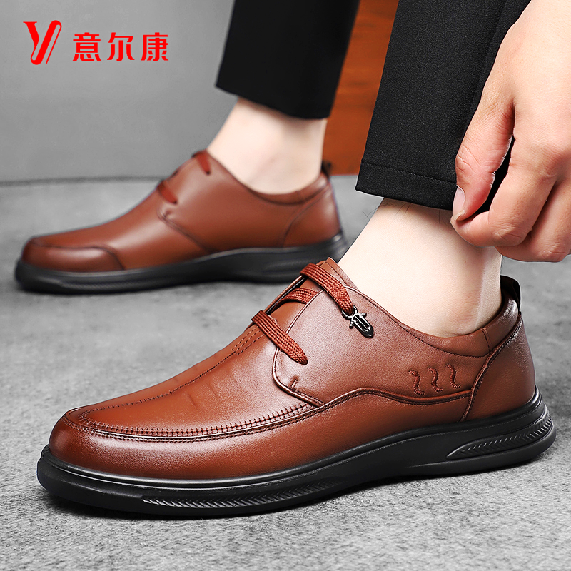 正品意尔康男鞋头层牛皮男士休闲皮鞋真皮透气软底防滑耐磨爸爸鞋