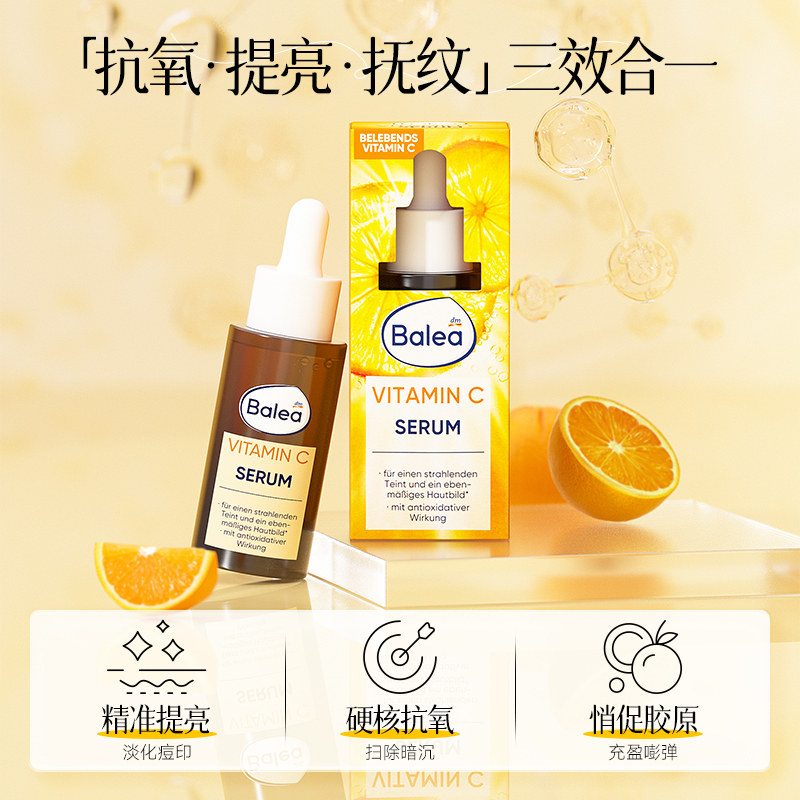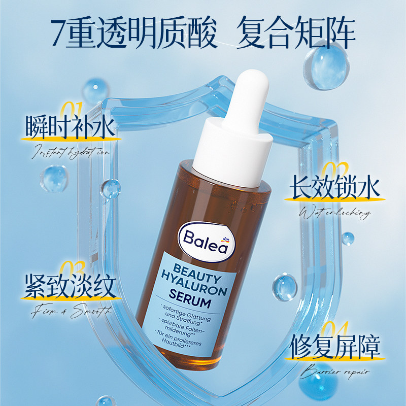 【官方正品】Balea芭乐雅玻尿酸精华紧致VC精华液提亮收缩毛孔女