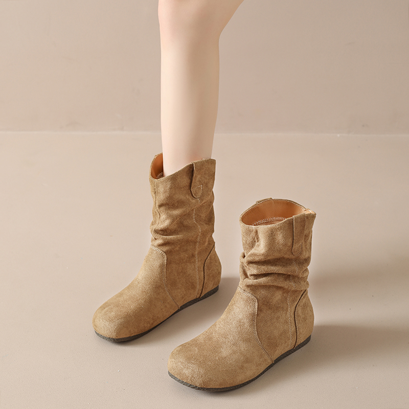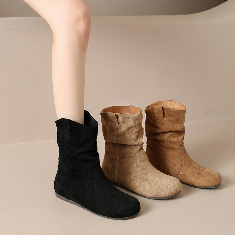 复古时尚平底短靴女2025秋冬新款休闲勃肯鞋西部堆堆靴显瘦马丁靴