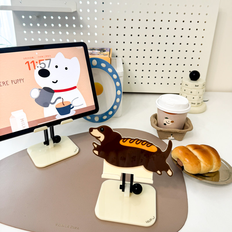 亚克力手机支架桌面ipad平板支架可爱卡通用手机架LELIO腊肠狗狗ins风简约高颜值学生办公追剧自拍照小众设计