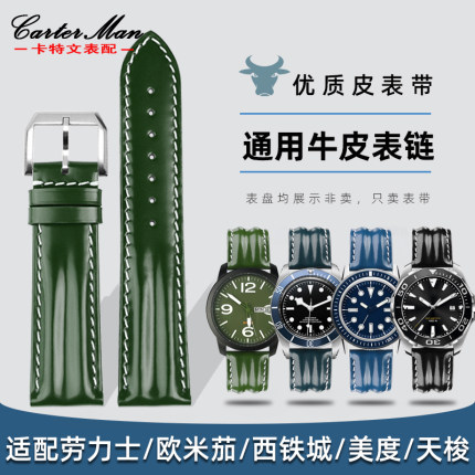亮面款牛皮男真皮手表带适配天梭欧米茄精工5号劳力士水鬼20 22mm