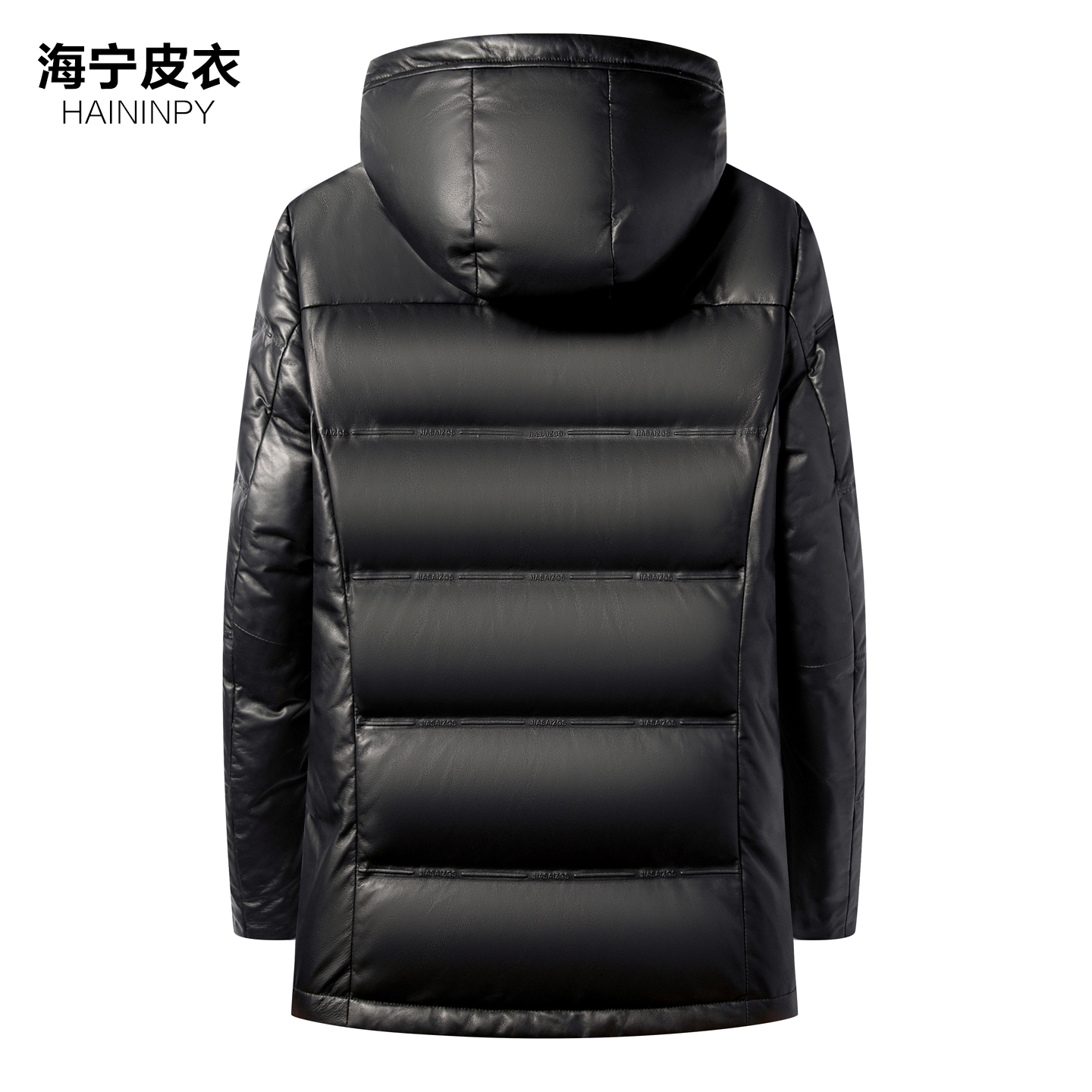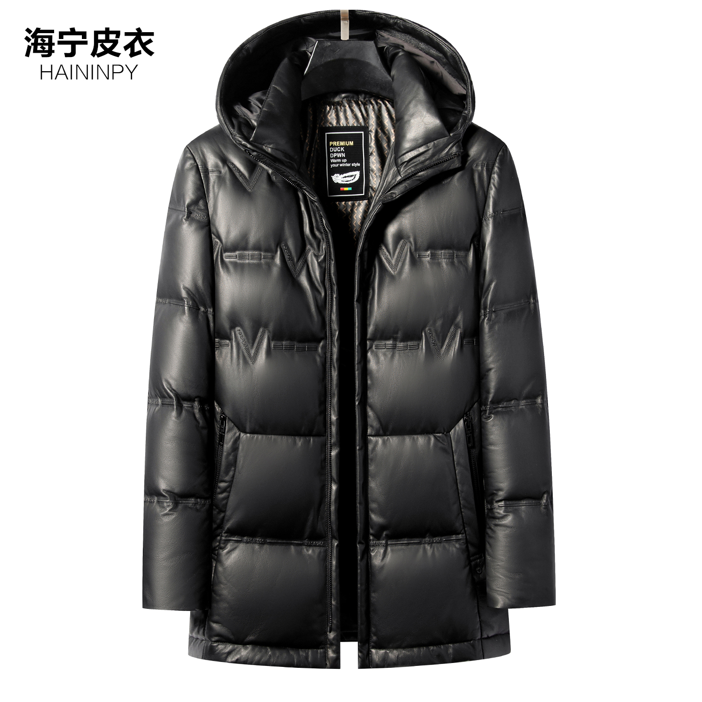 头层皮海宁真皮羽绒服男中长款真皮皮衣男连帽皮羽绒冬款加厚外套