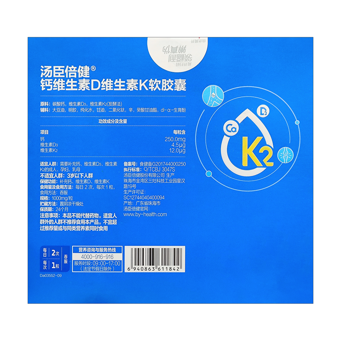 汤臣倍健钙DK软胶囊液体钙钙片男女补钙中老年人碳酸钙400粒礼盒