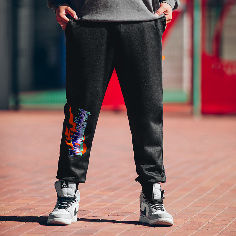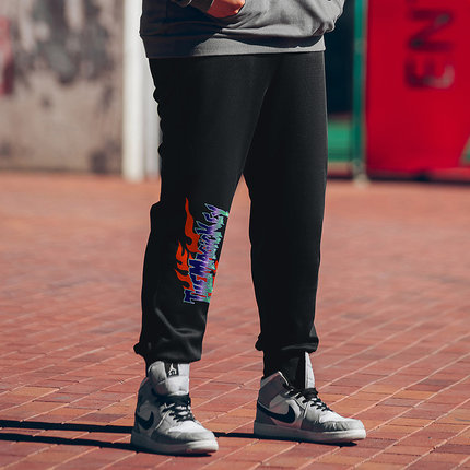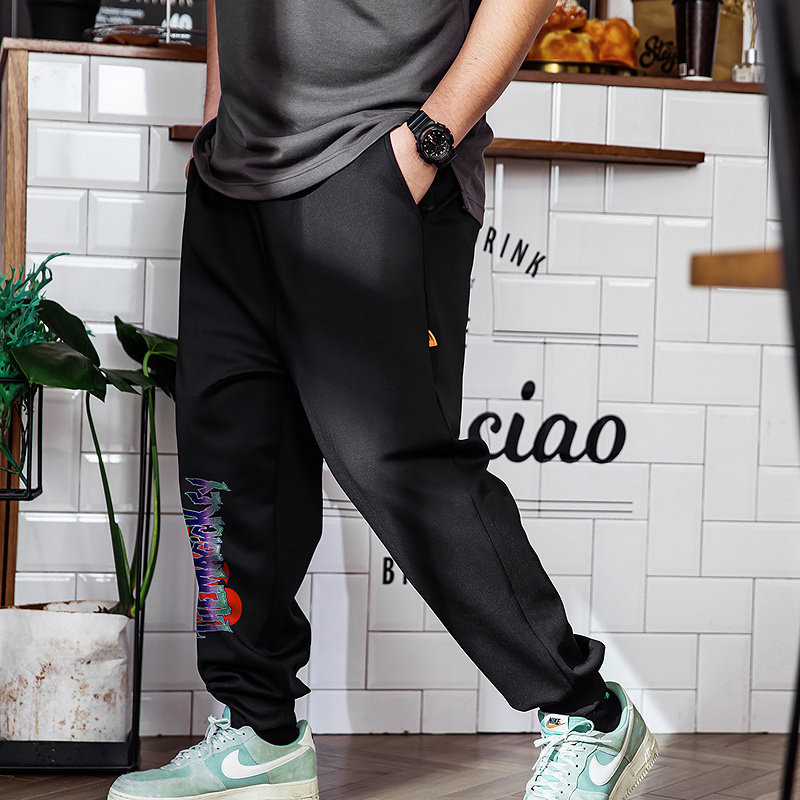 大码潮牌男装加肥加大束脚美式街头风高弹力撞色涂鸦字母九分卫裤
