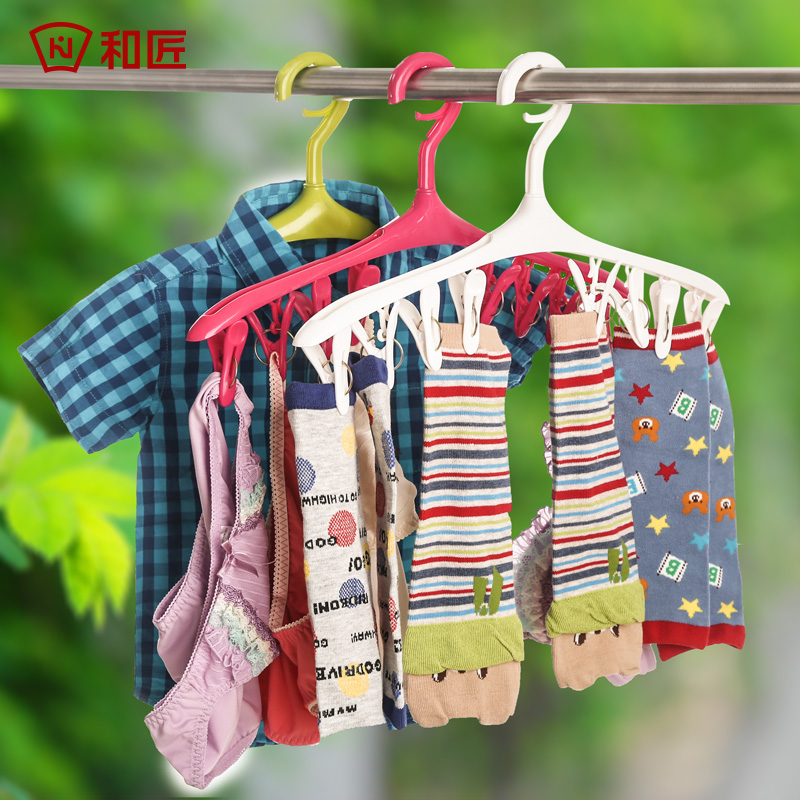 日式8头晾衣架家用塑料晒衣架子防风宝宝挂衣架袜子晾晒夹多夹子