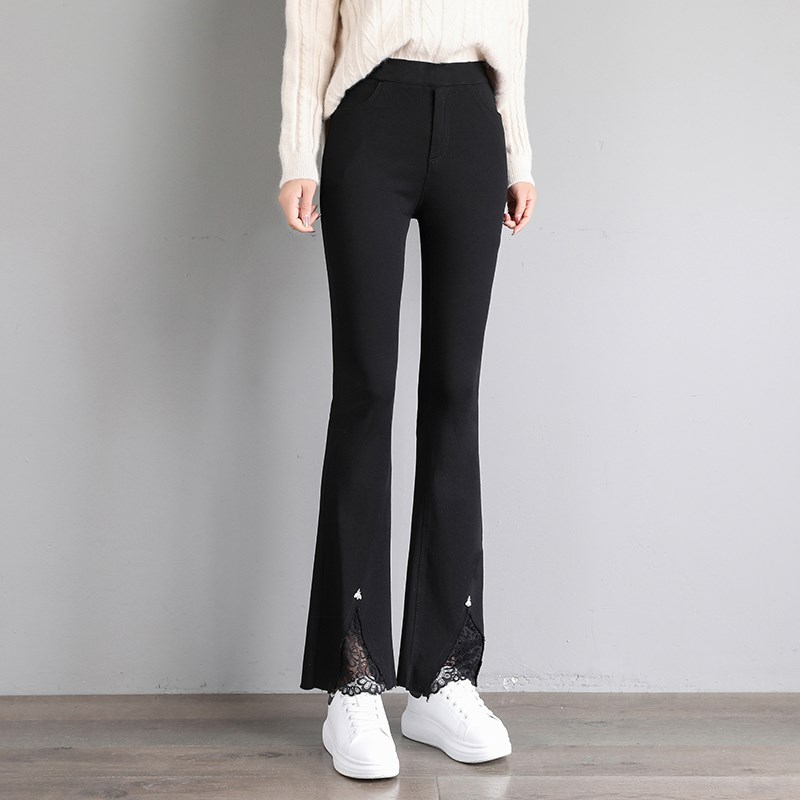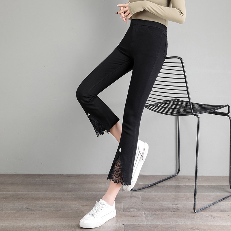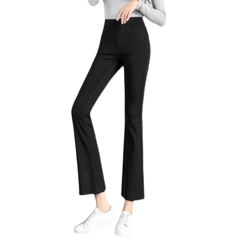 显瘦松紧腰开叉弹力七八分喇叭裤2024夏季高腰薄款九分微喇裤子女