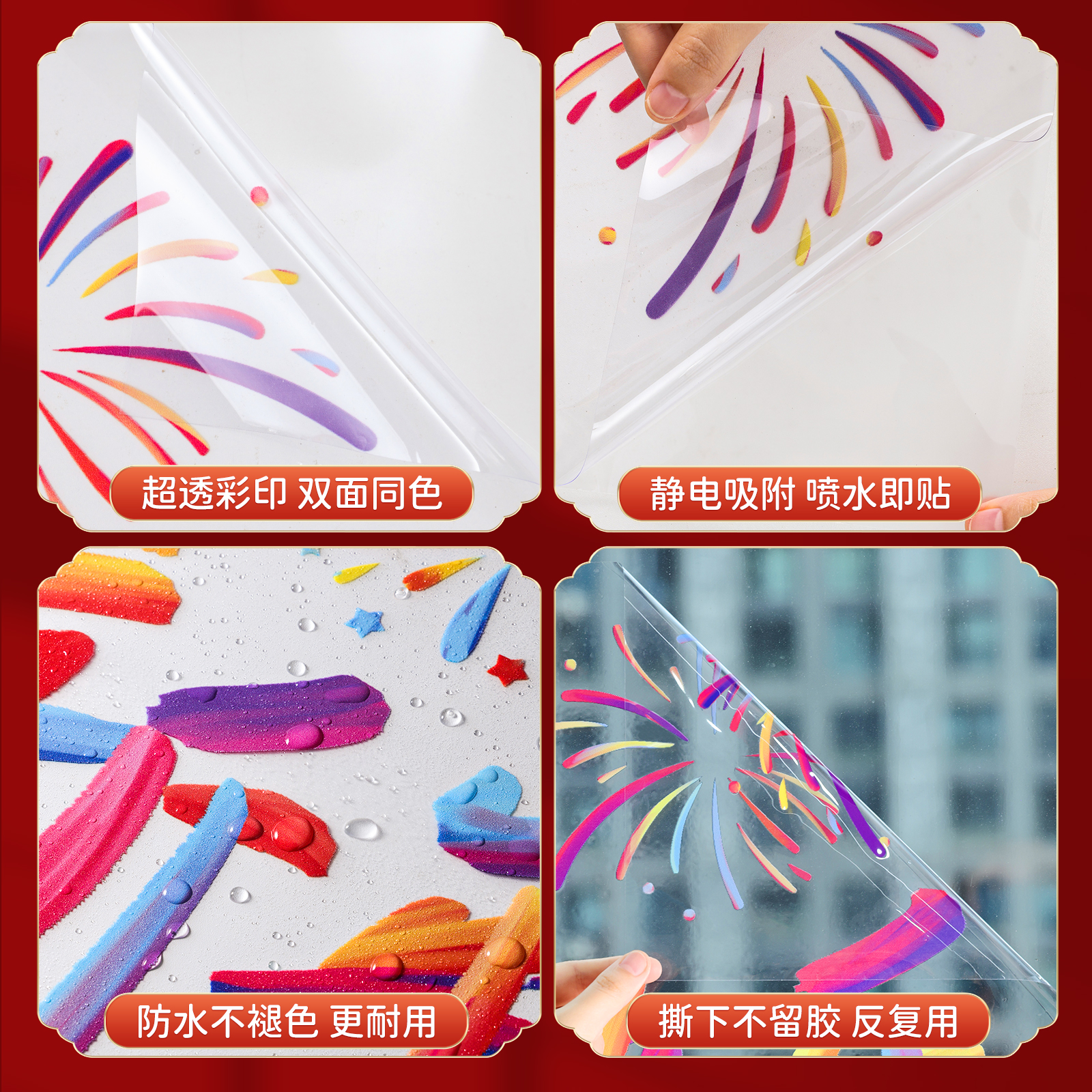 2026新年静电贴厨房推拉门玻璃贴纸装饰贴乔迁过年春节布置窗贴纸