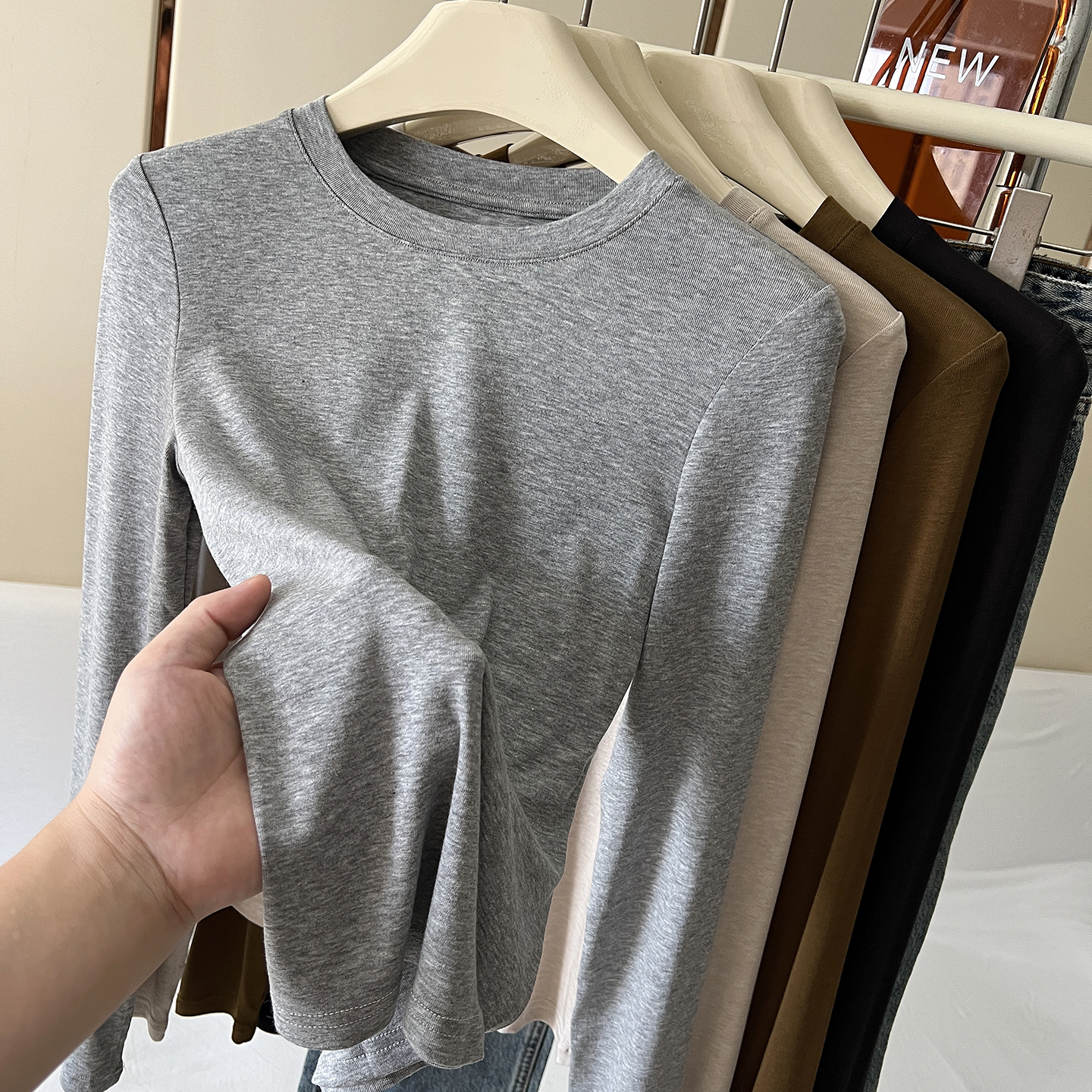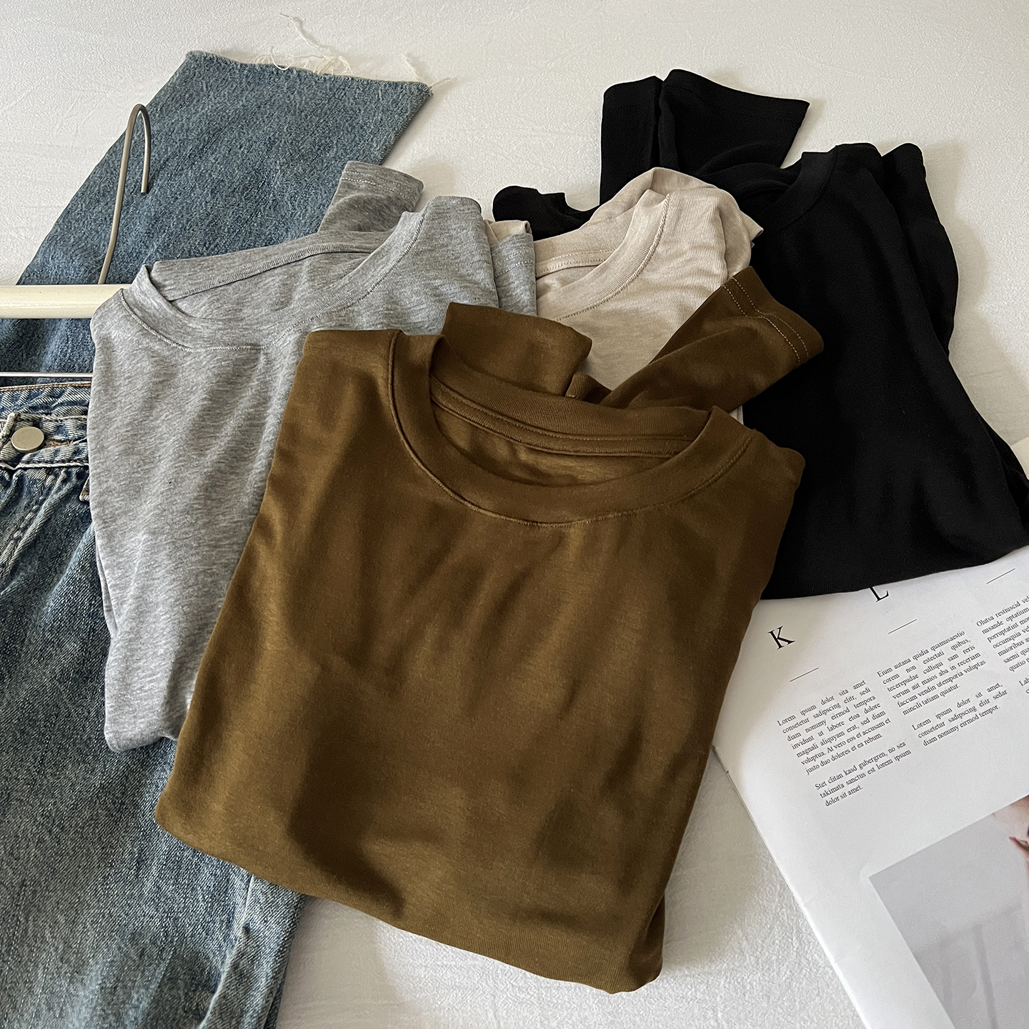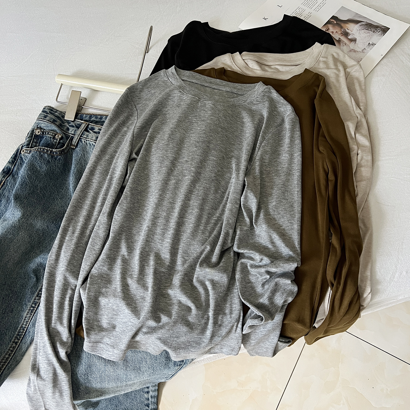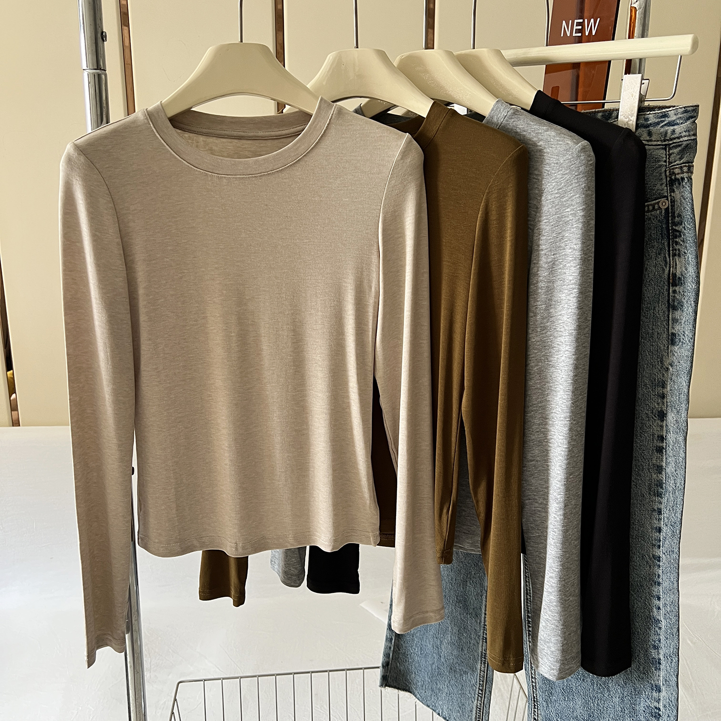 软绵绵莱赛尔羊绒圆领长袖T恤女秋冬温柔纯色修身弹力打底衫上衣