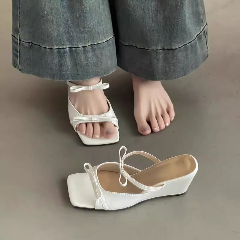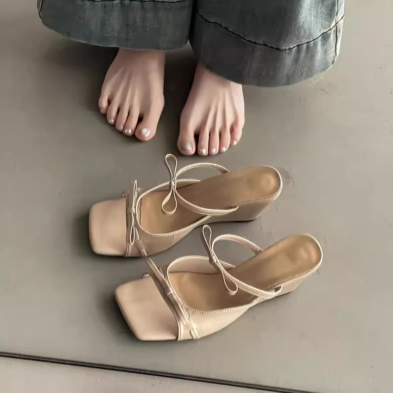 大码女鞋41到43法式凉鞋女夏季2025新款胖脚宽肥外穿坡跟凉拖鞋子