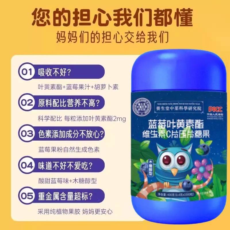 蓝莓叶黄素酯维生素C片0.4g*1000粒成人儿童营养压片糖果