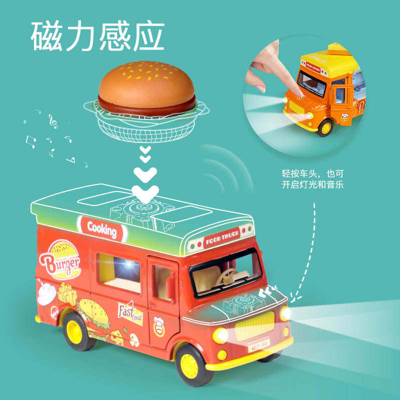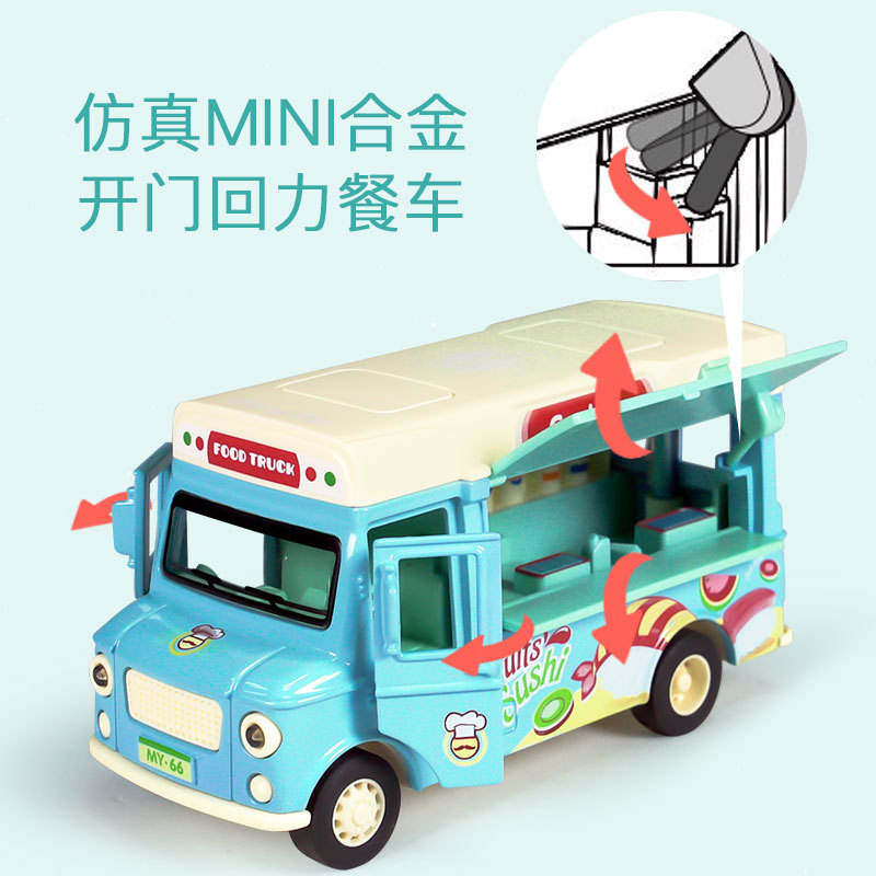 铭源1:36仿真合金感应快餐车diningcar声光音乐开门儿童玩具