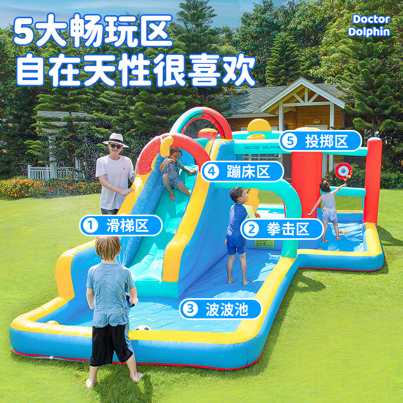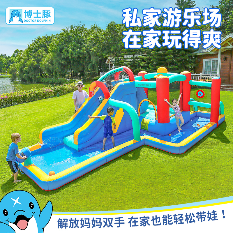 博士豚喷水充气城堡家用室内外小型儿童蹦蹦床滑梯跳床幼儿园玩具