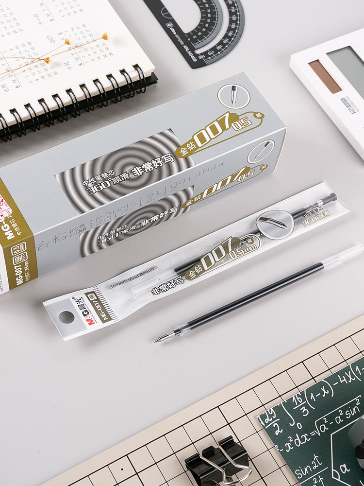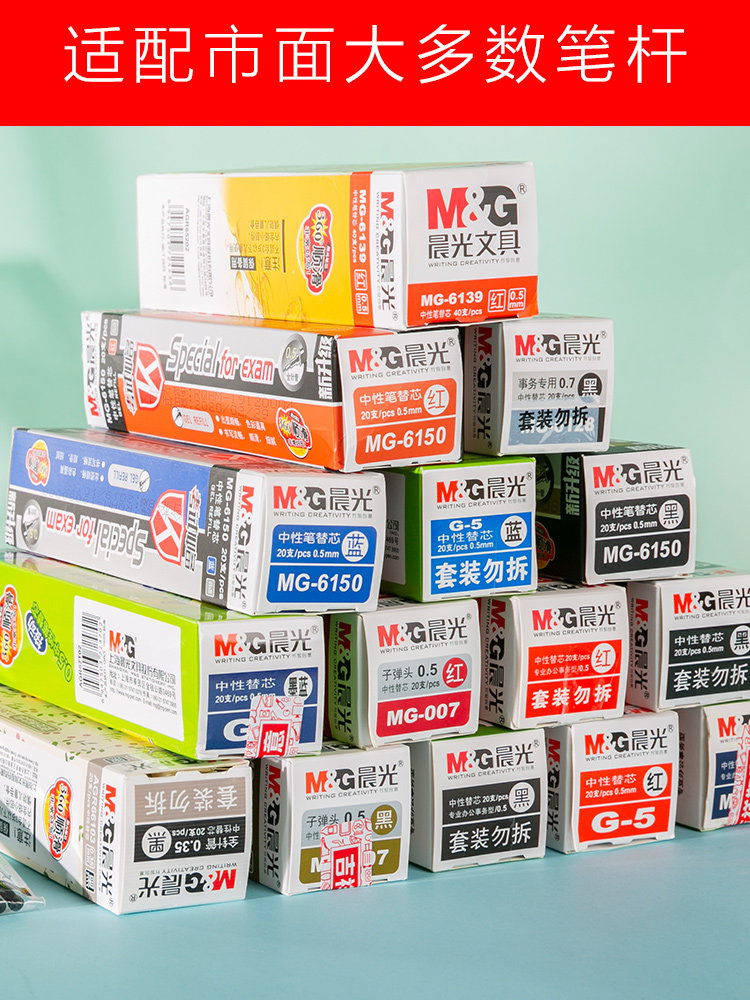 晨光中性笔笔芯孔庙祈福0.5全针管子弹头碳素黑蓝红墨蓝色桶装0.38签字水笔替芯0.7考试专用0.38mm超细包邮