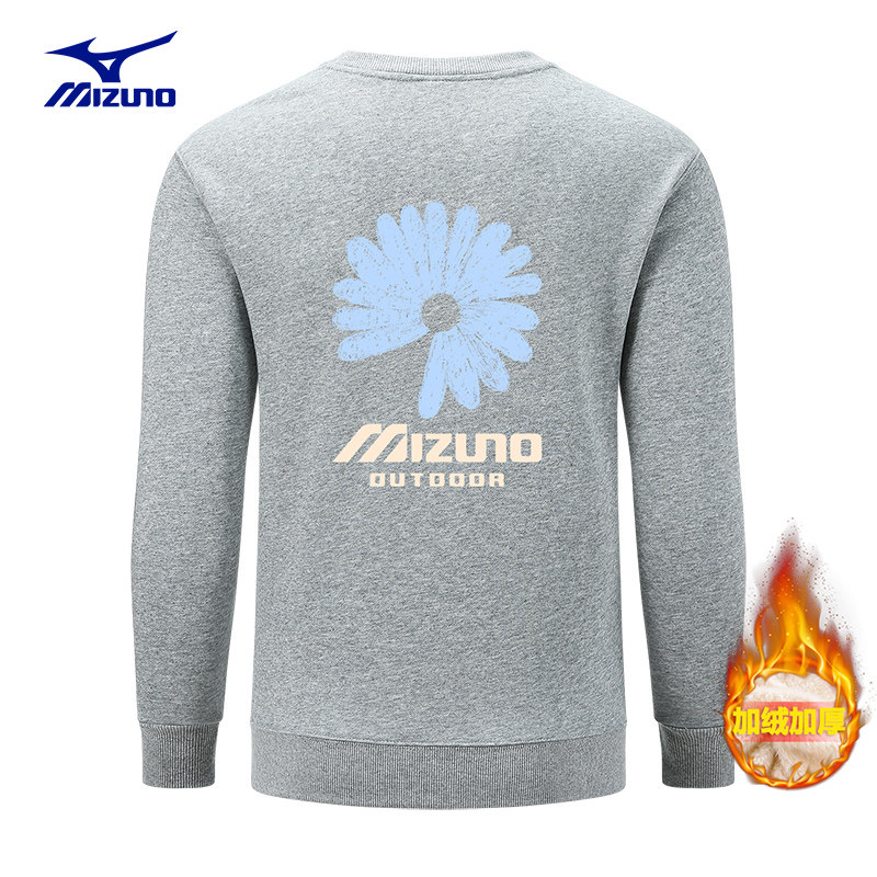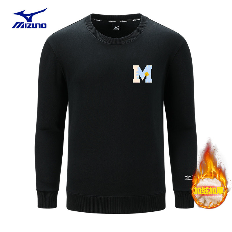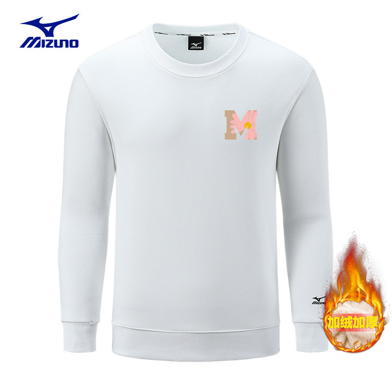 Mizuno/美津浓情侣圆领加绒卫衣男2024冬季男女同款休闲宽松上衣