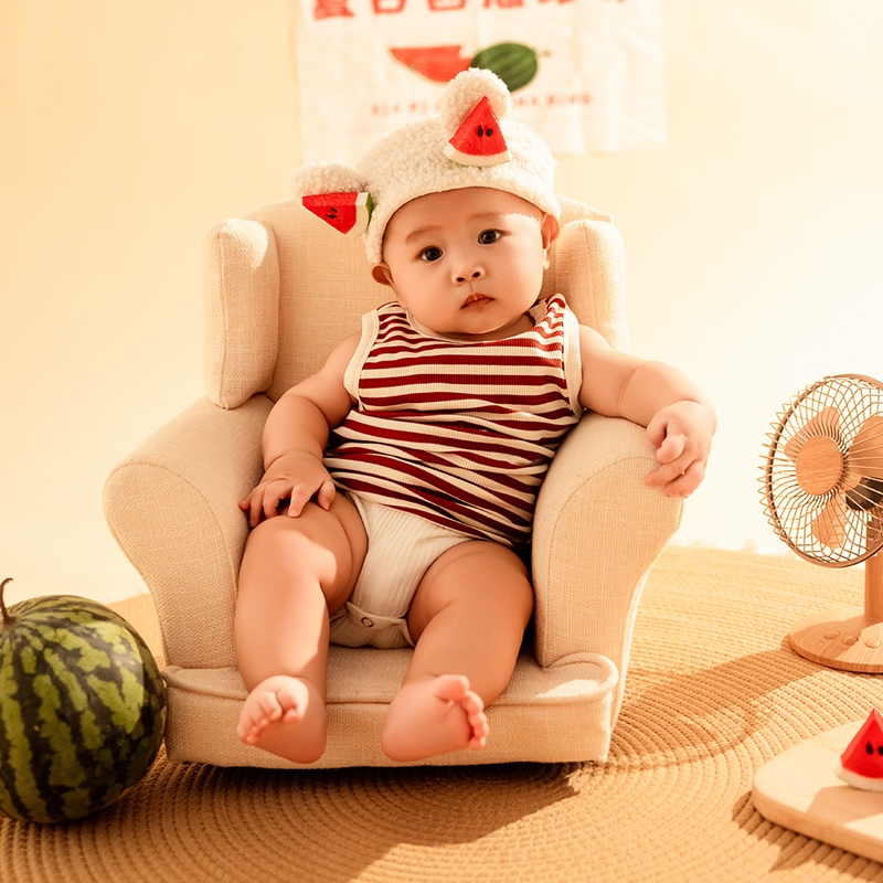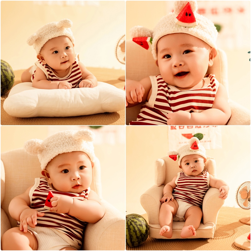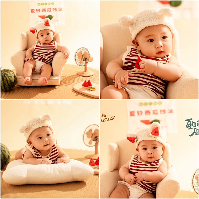 儿童摄影服装夏天西瓜炒冰主题宝宝百天照周岁照服装复古男孩写真