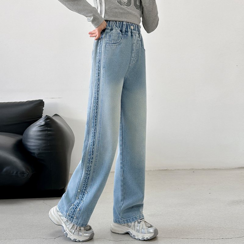 女童加厚裤子秋冬儿童牛仔阔腿裤