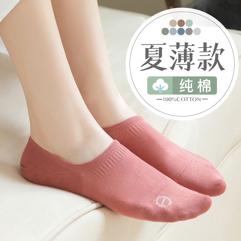 船袜子女纯棉夏季薄款硅胶防滑脱不掉跟浅口短袜全棉春秋透气隐形