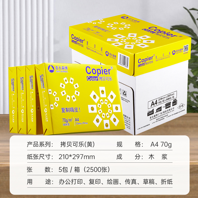 亚太森博黄拷贝可乐a4打印纸70g双面打印80g复印纸金佰禾草稿白纸