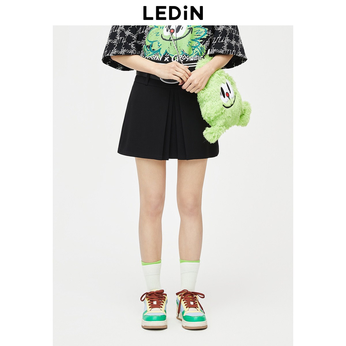 【清仓】乐町腰带百褶短裙春夏半身裙C1GED2101