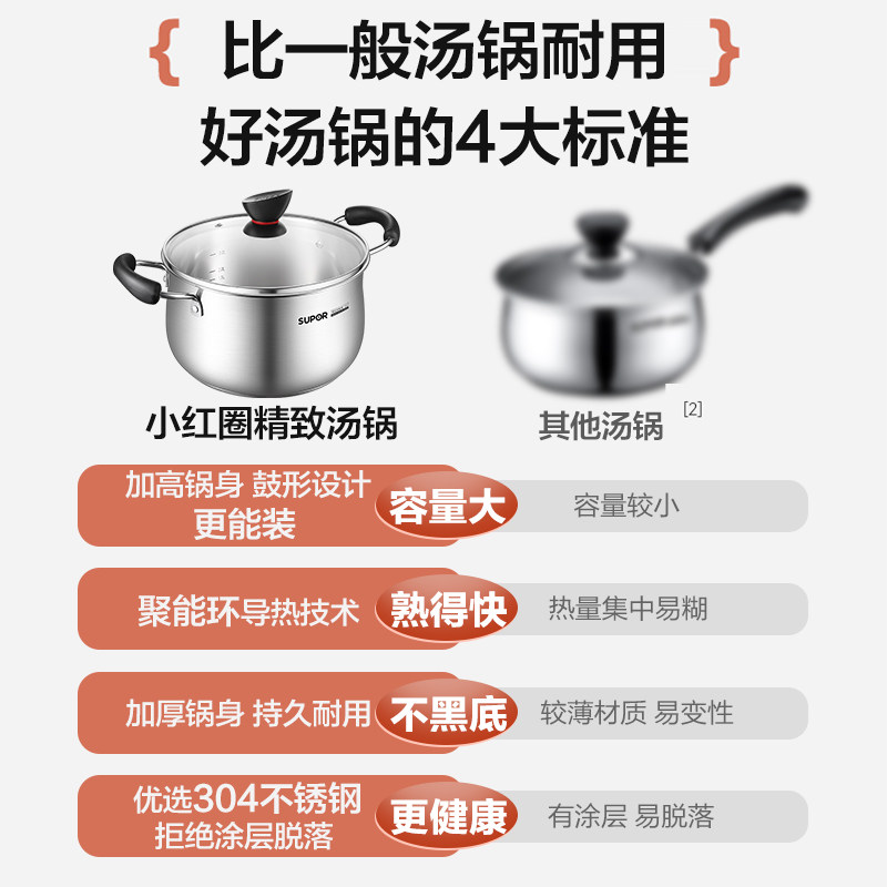 苏泊尔汤锅家用304不锈钢加厚蒸锅煮粥锅小奶锅煮面锅燃气灶炖锅