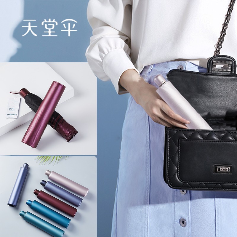 天堂伞黑胶三折折叠小巧便携晴雨伞两用遮太阳铅笔伞印广告伞