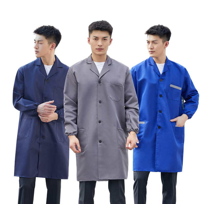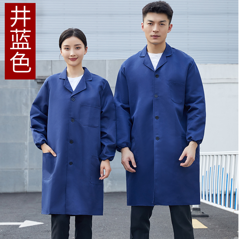 工作服大褂男长款物流工厂车间透气耐磨工装春夏季蓝大褂耐脏工人