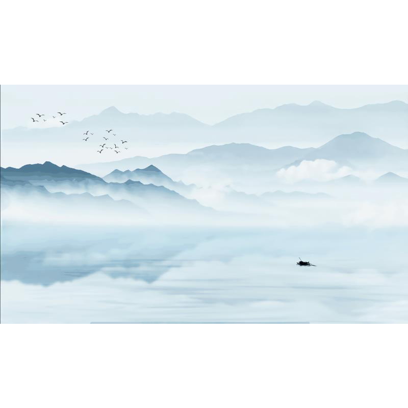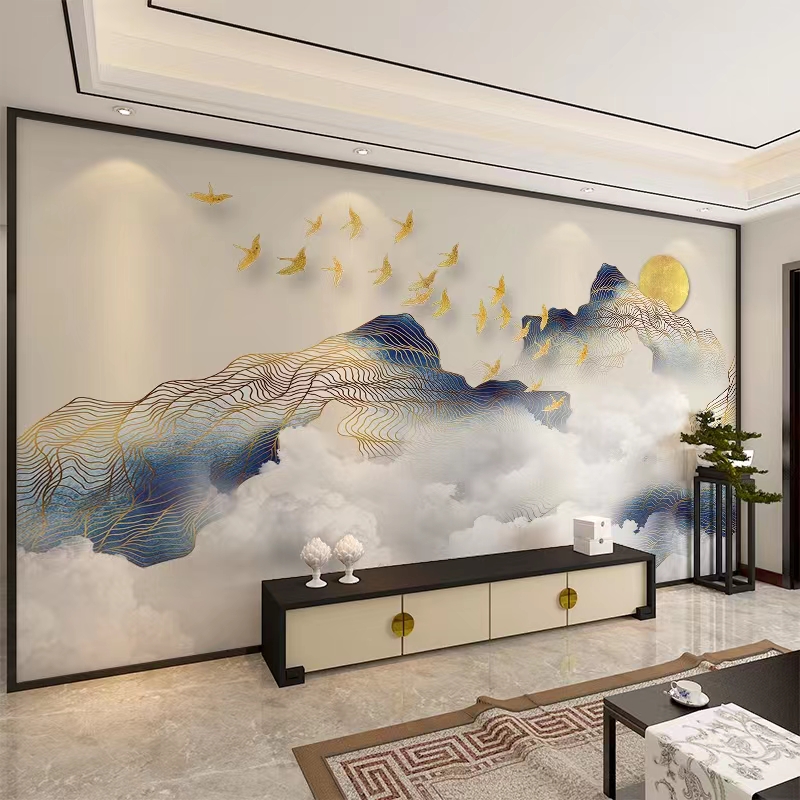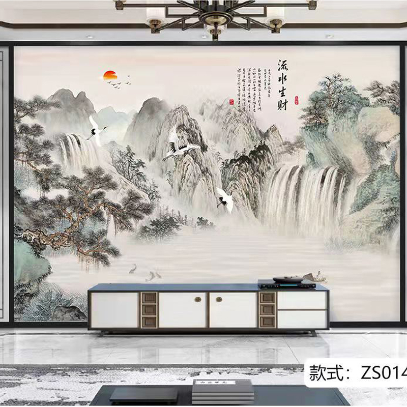 新中式素色墙纸水墨山水画电视背景墙壁纸客厅沙发影视墙壁画墙布