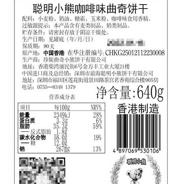 香港特产珍妮曲奇聪明小熊饼干咖啡味小花手工曲奇640g休闲零食品