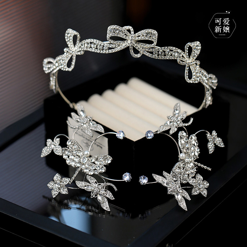 森系蝴蝶结皇冠轻奢高级感简约晚礼服发饰主婚纱新娘精致百搭头饰