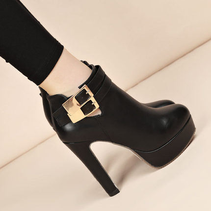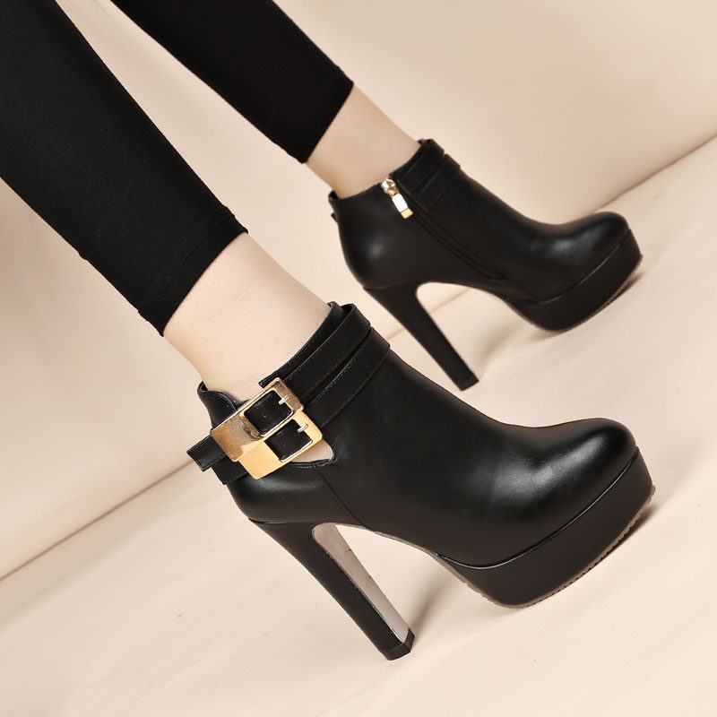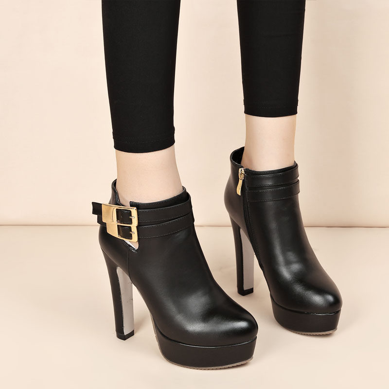 短靴女粗跟防水台百搭裸靴秋冬