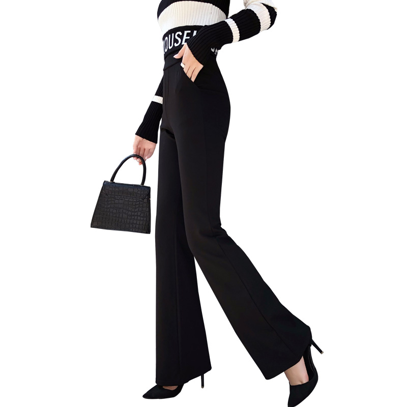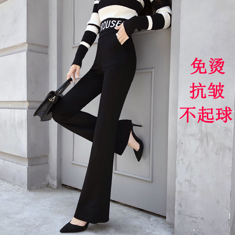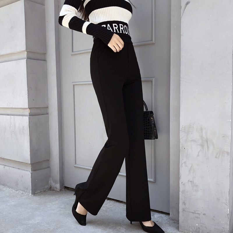 春夏新款黑色微喇裤女高腰弹力修身休闲裤加长裤子职业装阔腿女裤