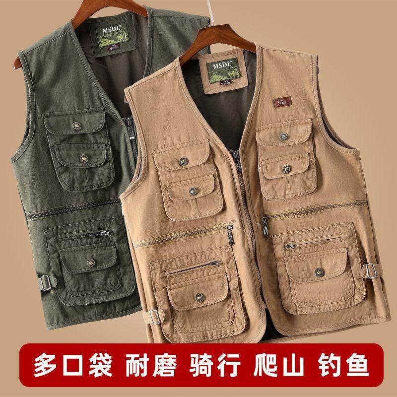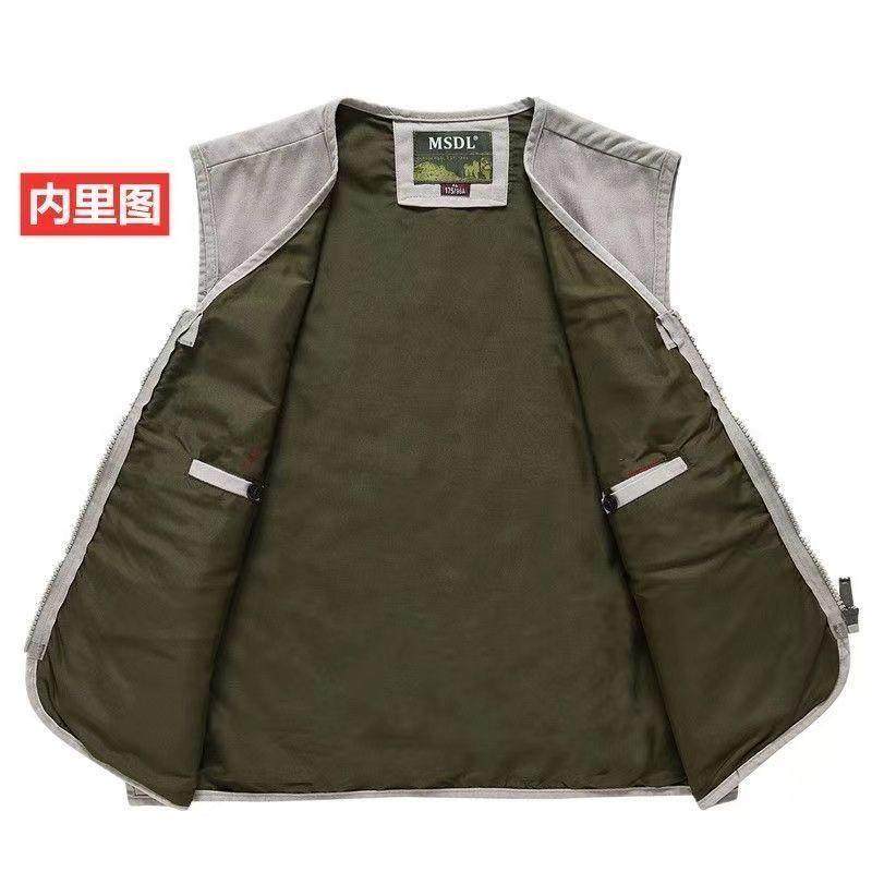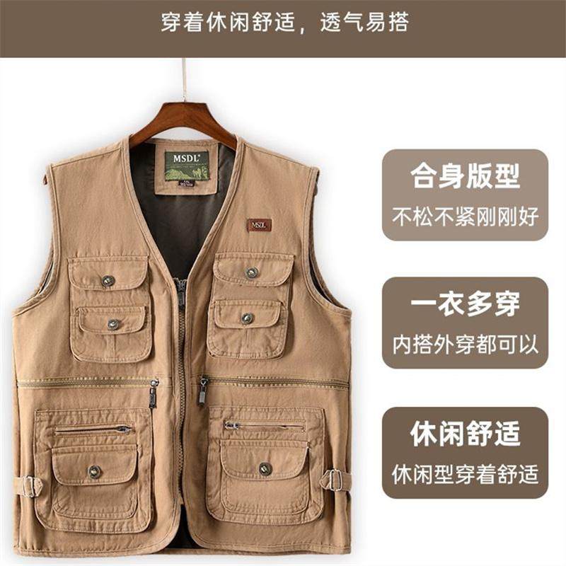 中老年男士马甲春秋爸爸坎肩背心外穿马夹爷爷钓鱼摄影穿纯棉马甲