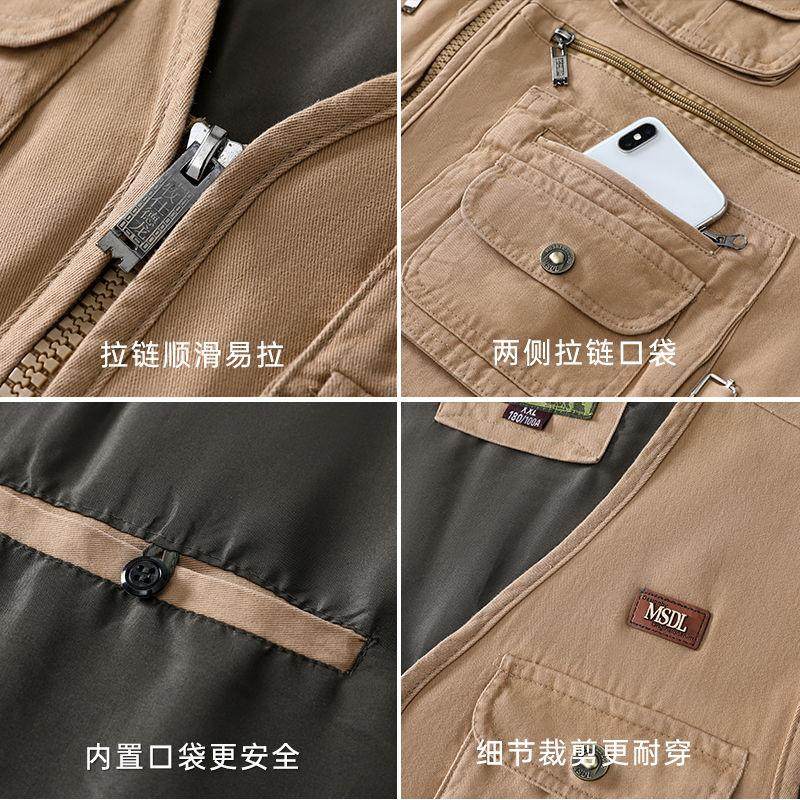 中老年男士纯棉多口袋马甲