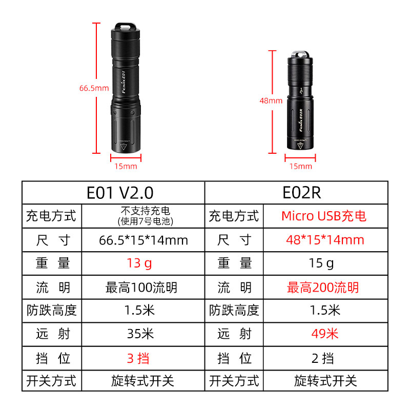 Fenix菲尼克斯E01 V2.0微小迷你强光便携AAA电池 EDC钥匙扣手电筒