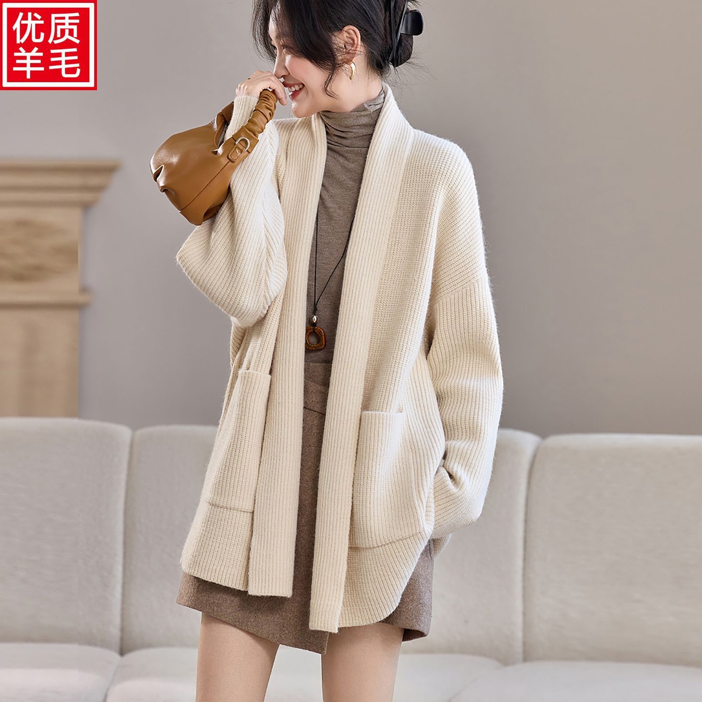今年流行特惠春秋针织羊毛衫开衫女中长款加肥加大码百搭披肩