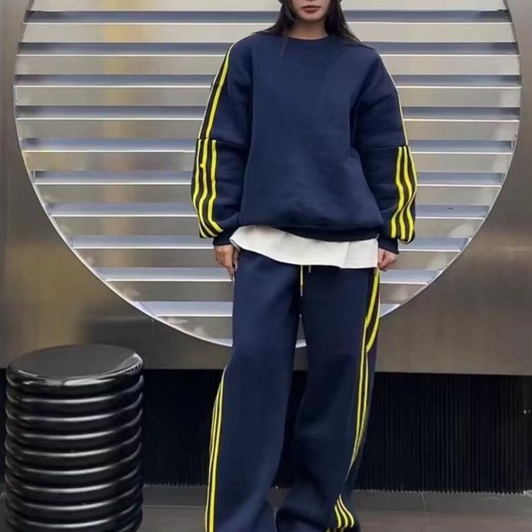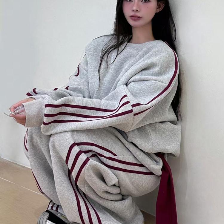 美式Oversize运动套装女秋冬加绒宽松显瘦时尚炸街卫衣休闲两件套
