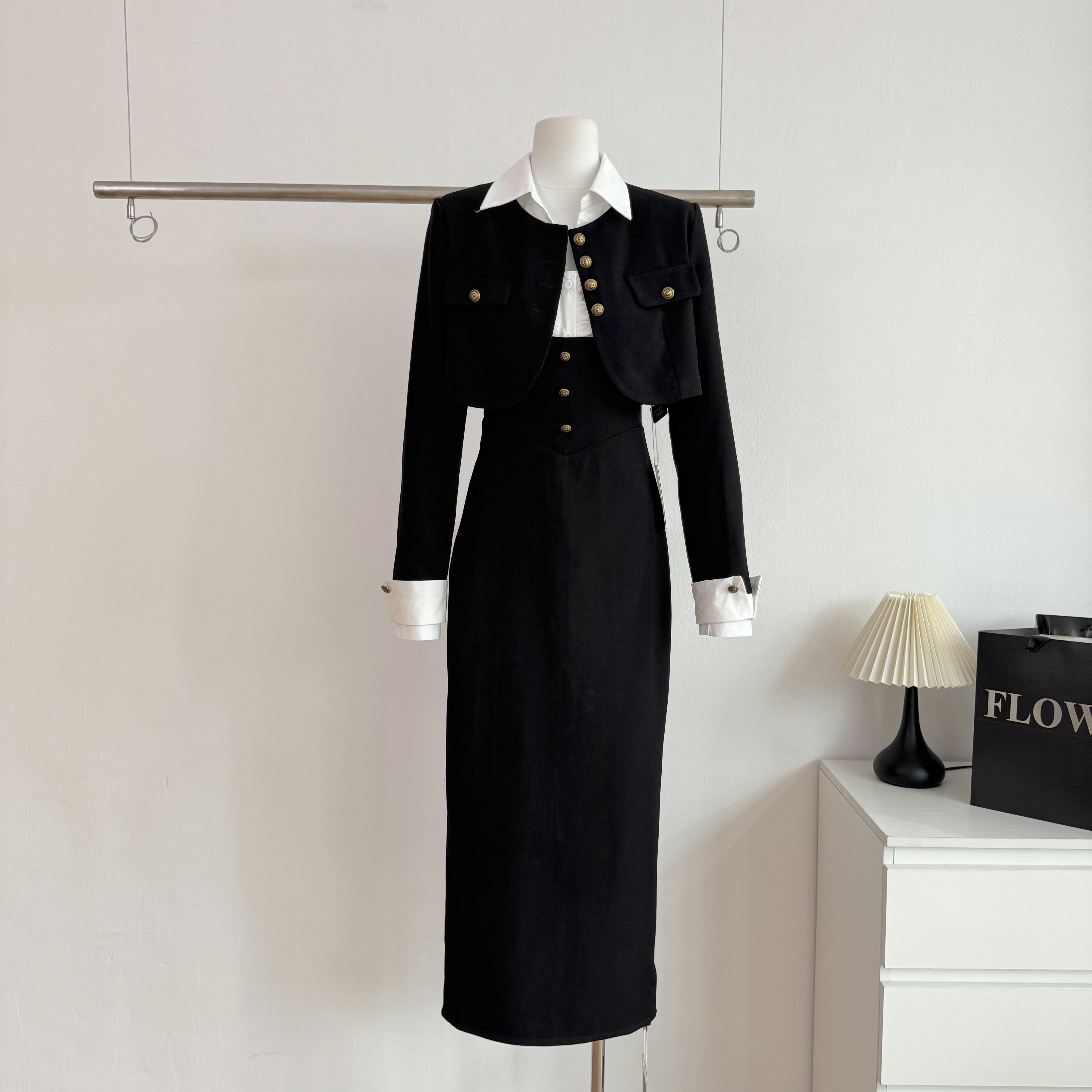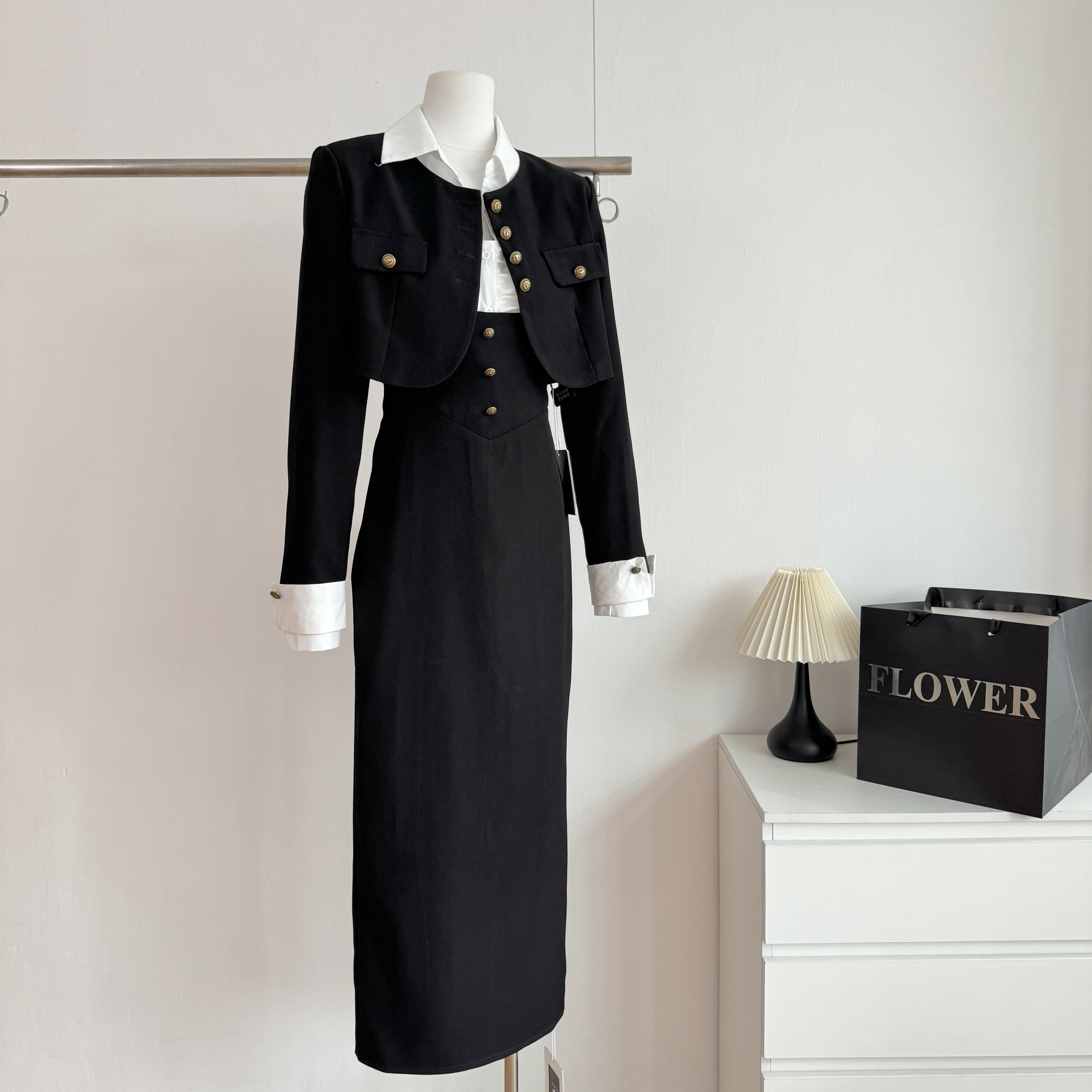 新款小香学院风背带连衣裙子女早春季高级感包臀长裙两件套装