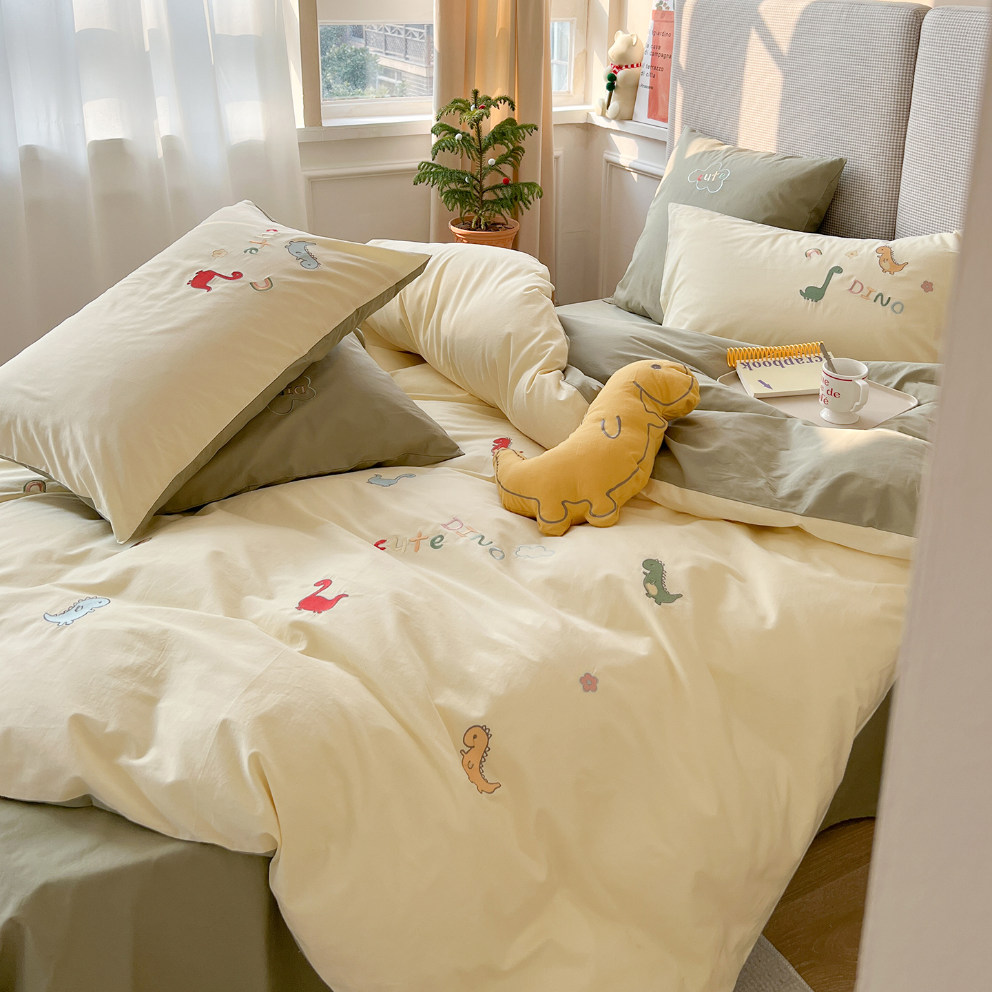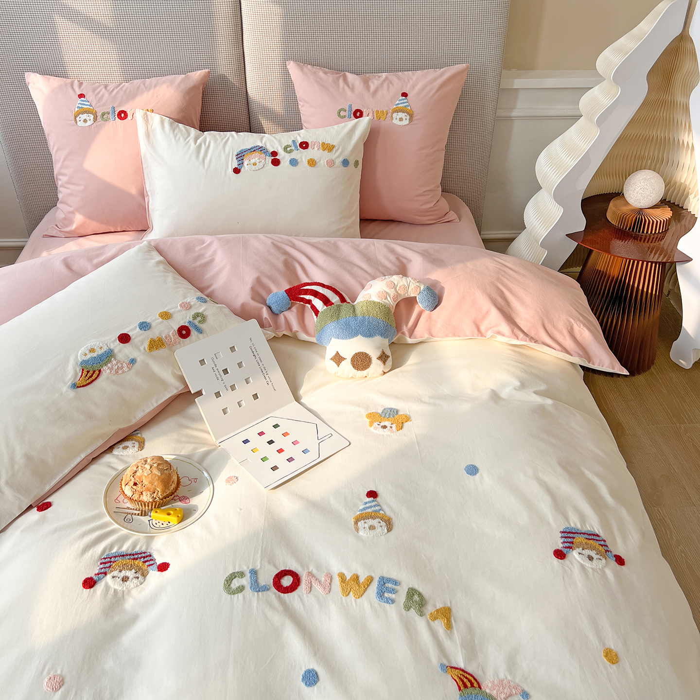ins三件套全棉水洗棉床上四件套卡通纯棉儿童女被套床单床笠床品