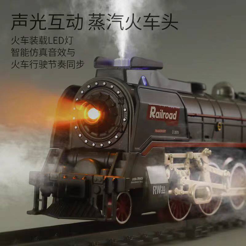 复古蒸汽电动小火车仿真合金高铁轨道车绿皮遥控模型儿童玩具男孩
