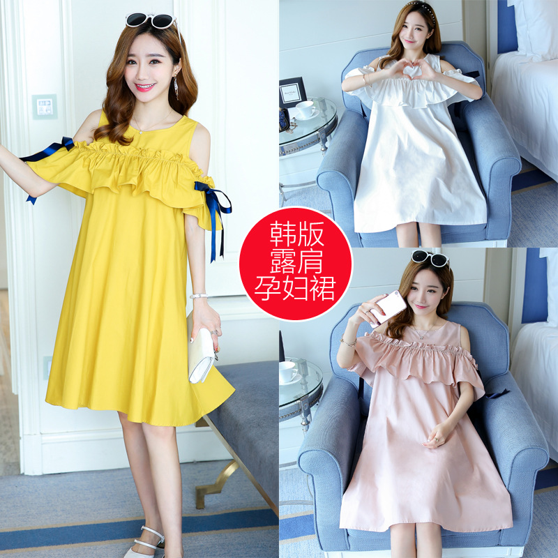 孕妇夏装棉麻连衣裙洋气孕妇装潮2020夏K款夏季宽松显瘦露肩裙潮