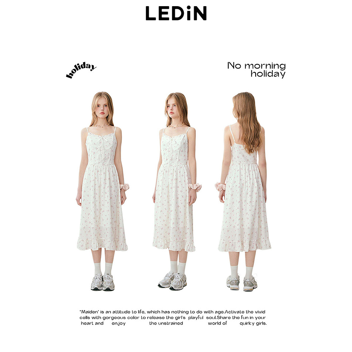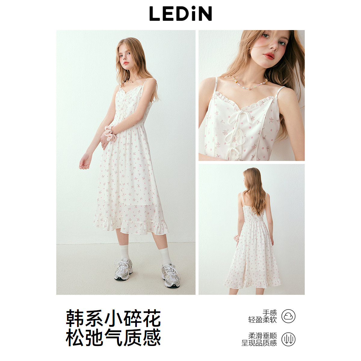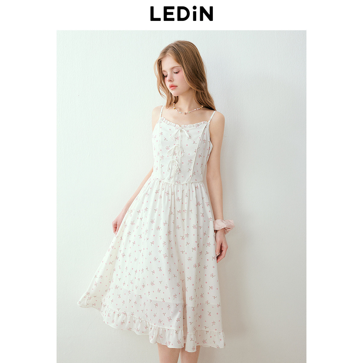 乐町松弛感吊带长裙春季新款绑带设计连衣裙韩系姐姐碎花裙