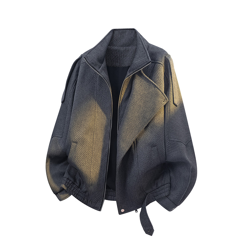 Wassup Shark美式老钱风双层领机车夹克男秋季休闲宽松工装外套潮