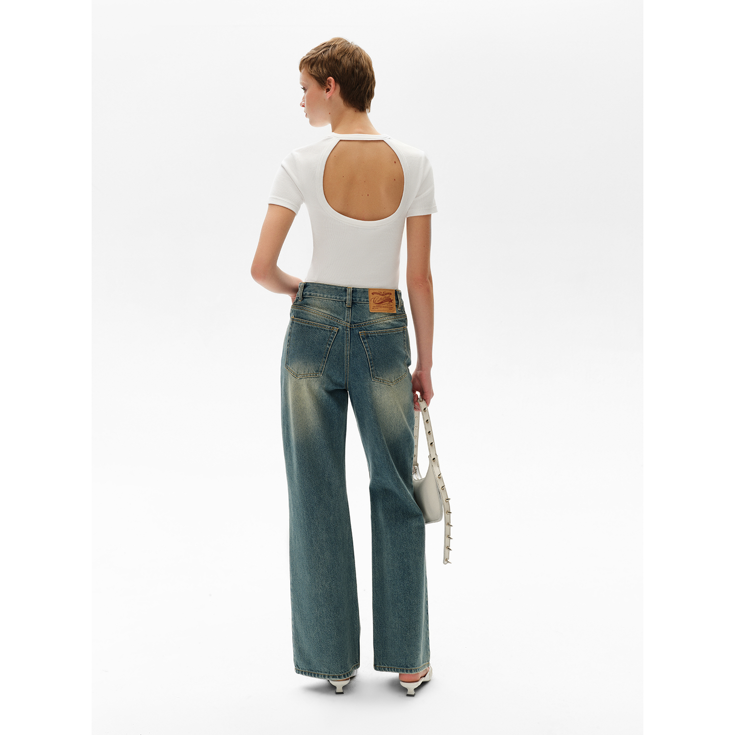 【柯乃予同款】CalledBack短袖T恤女夏季纯棉圆领露背打底上衣