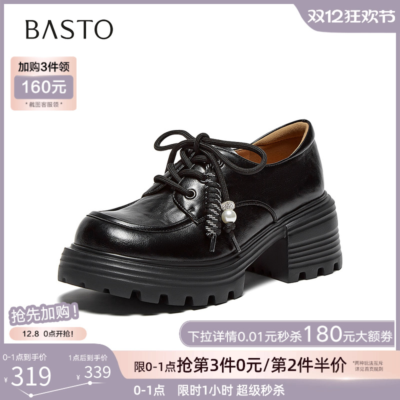 百思图2025秋季商场新款复古英伦牛津鞋粗跟女深口单鞋O9977CM5
