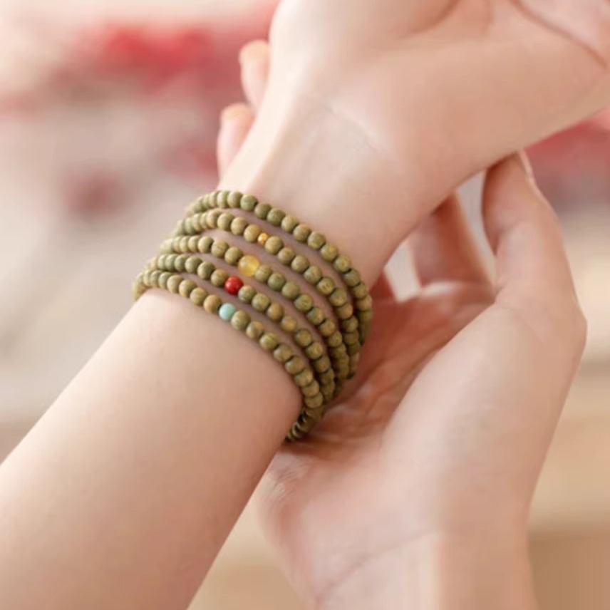 天然绿檀木细小简约素雅檀香木质手链小珠民族文艺男女手串学生